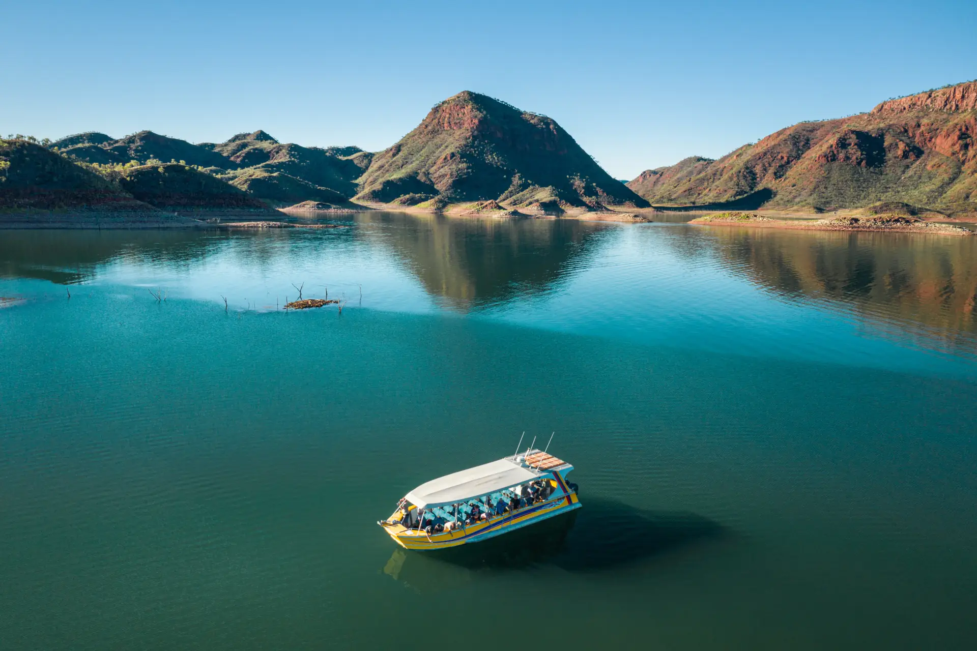 Begin your day with a relaxing morning and enjoy a buffet breakfast. Later, take to the stunning azure waters of Lake Argyle aboard the Kimberley Durack. Encounter extraordinary wildlife as you explore the bays and inlets. Marvel at the sheer size of this 1000 square kilometre lake and the spectacular vistas afforded from the water. For a truly memorable experience, take a refreshing swim in the crystal-clear waters off a remote island. Enjoy a fresh grazing style lunch with beer, wine, and soft drink onboard before returning to shore.